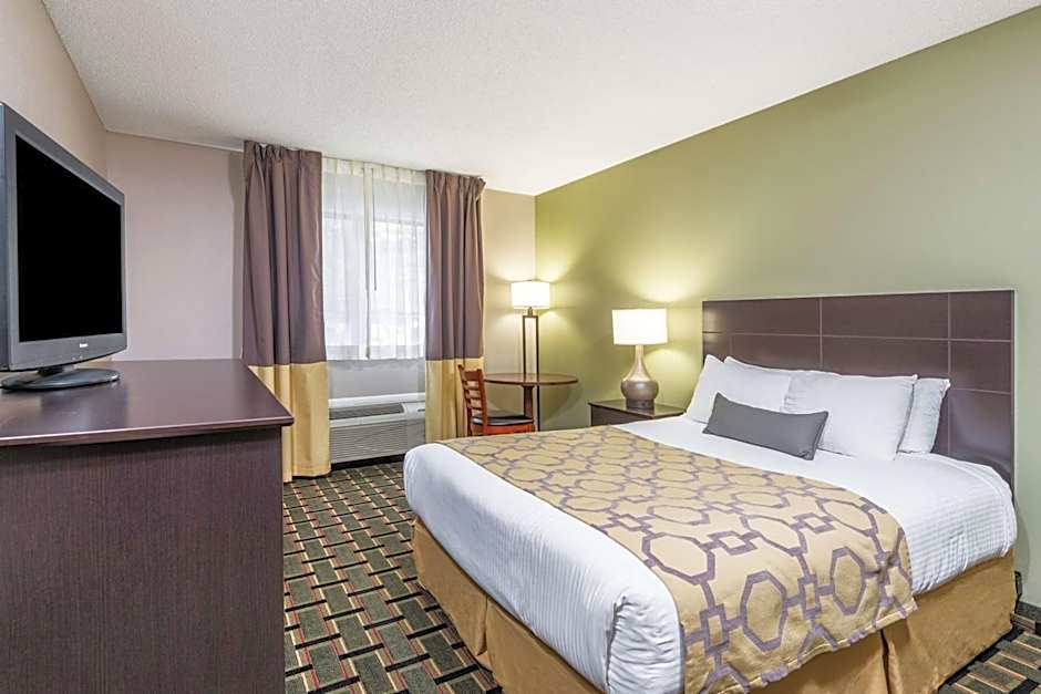 Featuring an accessible bathroom with grab bars and a shower bench, this disability access room also offers a microwave and a refrigerator.